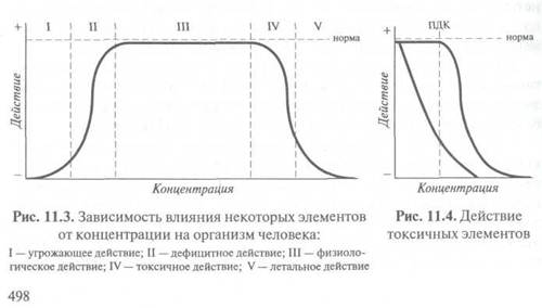 В большинстве случаев реализация того или иного эффекта зависит от концентрации. При повышении оптимальной физиологической концентрации элемента в организме может наступить интоксикация, а дефицит многих элементов в пище и воде может привести к достаточно тяжелым и трудно распознаваемым явлениям недостаточности.