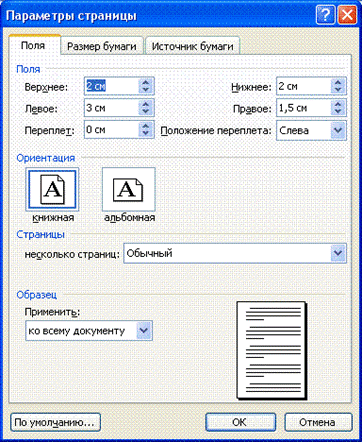 Рис. 6. Окно диалога Параметры страницы вкладка Размер бумаги