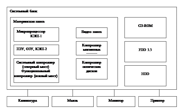 Рис. 2.2.1. Структурная схема современного персонального компьютера