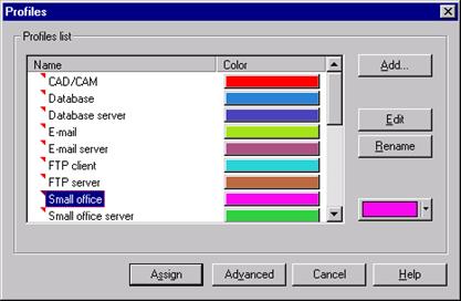 Выберете из меню видов трафика, которые вы желаете установить. Для них можно назначить цвет, которым будут помечены пакеты сообщений в процессе работы модели, затем нажмите кнопку <Assign>и закройте диалоговое окно.