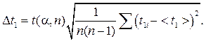 Здесь t(a, n) – коэффициент Стьюдента для доверительной вероятности a = 0,95 и числа измерений n = 5. Аналогично вычисляется абсолютная погрешность измерения времени Dt2.
