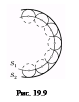 Согласно Гюйгенсу, каждая точка волновой поверхности, которой достигла в данный момент волна, является центром элементарных вторичных волн, их внешняя огибающая будет волновой поверхностью в последующий момент времени (рис. 19.9; S1 и S2 — волновые поверхности соответственно в моменты tl и t2; t2 > t1.
