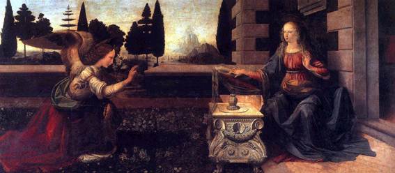 Благовещение. 1472-1475. Темпера, дерево. Размер: 98 x 217 см. Галерея Уффици, Флоренция.