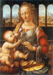 Мадонна с гвоздикой. Ок. 1472. Хранится в Мюнхене, близка по стилю с произведениями этого периода (например, «Благовещение» из Уфицци).