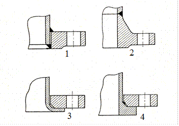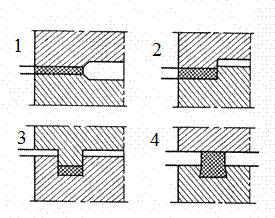 1 – соединение с плоским фланцем; 2 – соединение «выступ-впадина»; 3 – соединение «шип-паз»; 4 – соединение с прокладкой в пазу.
