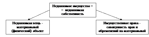 Недвижимое имущество – это юридически неперемещаемая материальная вещь (физическая сущность) и пакет имущественных прав и обременений на нее (юридическая сущность).