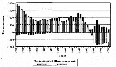 Компоненты изменения численности населения России, 1960-2000 гг.