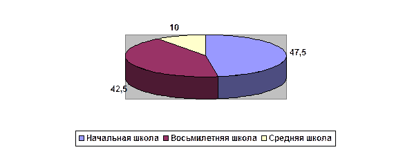 42,5% - учатся в восьмилетних школах 3893 учеников.