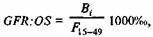 где GFR:OS - специальный коэффициент рождаемости по порядку рождения; Bi - число рождений i-той очередности; F15-49 - численность женщин репродуктивного возраста.