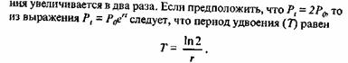 Поскольку ln2 = 0,70, то для расчета периода удвоения достаточно 70 разделить на величину среднегодового непрерывного коэффициента прироста, выраженную в процентах. Для нашего примера период удвоения равен