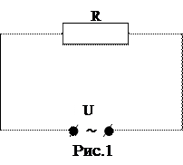 На рис.1 изображена электрическая схема включения активного сопротивления к источнику переменного напряжения. Пусть известен закон изменения напряжения