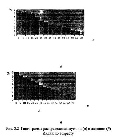 - распределения мужчин и женщин по возрасту;