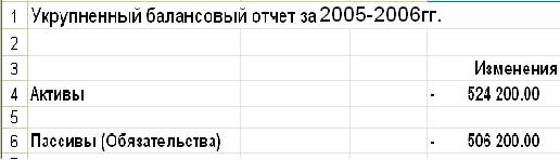 Отмените структуру таблицы Укрупнённый балансовый отчёт за 2005-2006гг