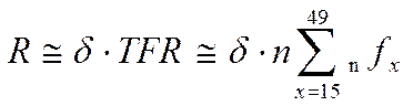 ) представляет собой среднее число девочек, рожденных за всю жизнь одной женщиной, дожившей до конца репродуктивного периода при данных уровнях рождаемости и смертности. Фактически он измеряет скорость замещения материнского поколения дочерним.
