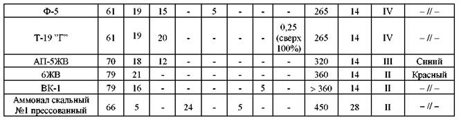 Таблица 4.5. Характеристики аммонитов и аммоналов