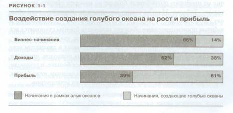В ходе исследования бизнес - начинаний 108 организаций мы попытались дать количественную оценку воздействия голубых океанов на прибыль и доходы (см. рисунок 1-1).