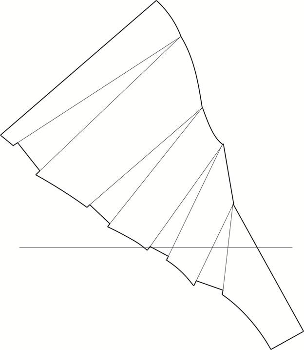 Нагрудная вытачка методом технического моделирования переведена в линию низа изделия, наклонный подрез. Окончательная форма бюстье найдена методом макетирования.