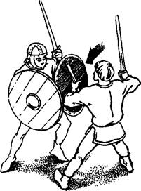 клинка, шит накрывает атакующую руку и сворачивает ее вниз-в сторону. В образовавшийся про-гал наносится мошный контратакующий удар.