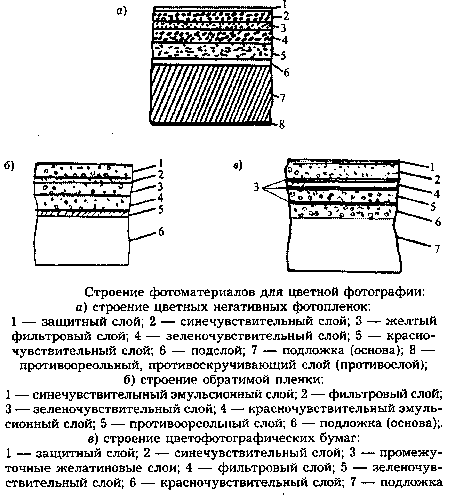Строение современных цветных фотоматериалов.