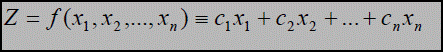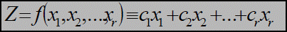 (или максимизирующую — Z) при линейных ограничениях-равенствах: