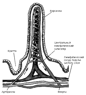 Кроме этого между ворсинками находится большое количество ферментов, благодаря которому осуществляется пристеночное пищеварение. Они не допускают к месту действия микроорганизмы и образовавшиеся простые вещества легко всасываются у стенок.