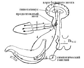 1. Симпатическая нервная система à замедляет слюноотделение, выделение всех пищевых соков, тормозит всасывание