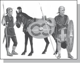 Следует, однако, заметить: чтобы римлянину стать гоплитом, он должен был иметь определенные средства, ибо ополченец вооружался за собственный счет. Воин обязан был быть не только отважным и умелым бойцом, но и «крепким мулом», ибо тащил на себе поклажу со всем необходимым, тогда как греки даже свое оружие зачастую поручали нести оруженосцам. А уж в искусстве вести оборону или осаду, где нужно было вырыть километры окопов, рвов, валов, насыпей, делать подкопы и многое другое, в этом искусстве римлянам и вовсе не было равных. Как говорил один римский полководец: «врага надлежит побеждать лопатой». Хотя они мечом, щитом и копьем владели превосходно, что не раз и доказали. Римские легионы (150 000), составляя половину армии, были грозой для врага.