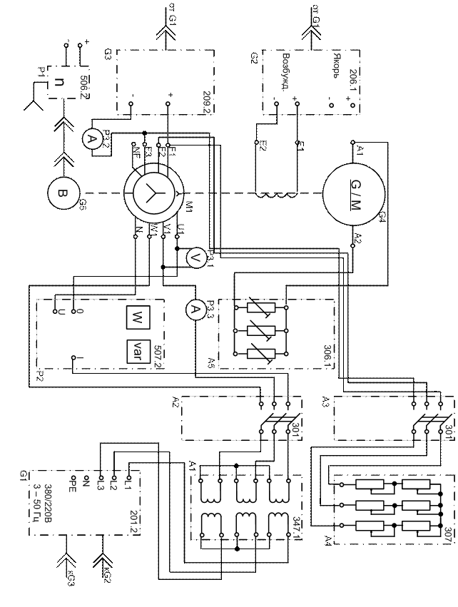 | G2 | Источник питания двигатля постоянного тока | 206.1 | 0...250В- 3 А (якорь) 200 В -;1 А (возбуждение) |