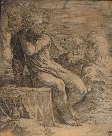 Два старца и сидящий юноша. Офорт. Эрмитаж