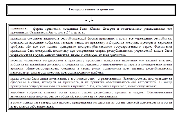 Римская республика. Республиканский образ правления установился в Древнем Риме в 509 г. до н.э., после изгнания последнего рекса Тарквиния Гордого. Республиканский период принято делить на периоды ранней (VI-III вв. до н.э.) и поздней (конец III- -I вв. до н.э.)республики. В Римской республике с разделением властей сочетались аристократические и демократические черты - - при преобладании первых, - - обеспечивавшие привилегированное положение знатной богатой верхушки рабовладельцев (сх. 18).