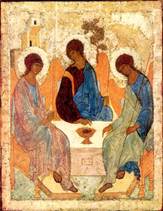 o Рублёв видел не идею беспощадного наказания грешного человека, не мрачную безысходность и трагизм, как у Феофана а идею любви, всепрощения, милосердия.