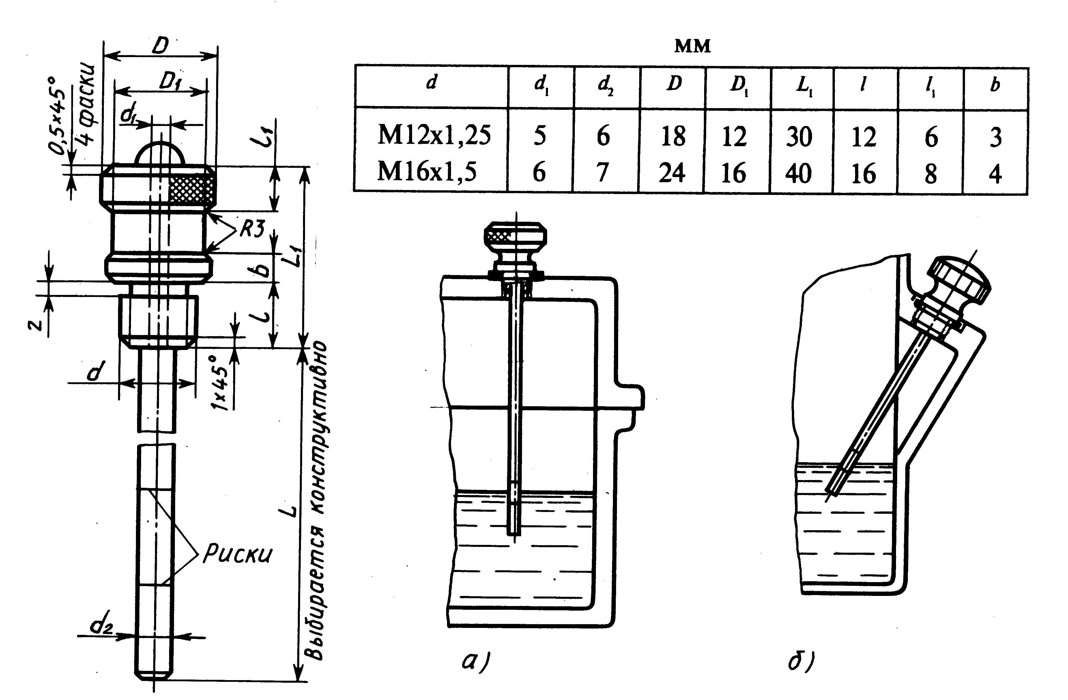 Наибольшее распространение имеют жезловые маслоуказатели (рис.2.32,а, 2.32 б) так как они удобны для осмотра; конструкция их проста и достаточно надежна.