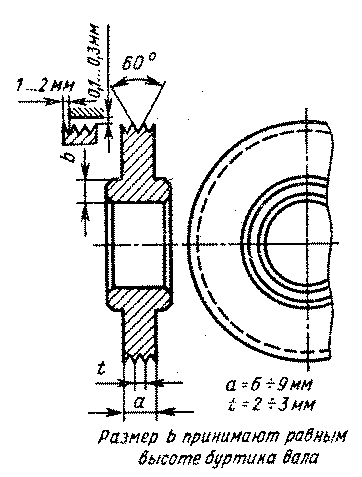 Размеры мазеудерживающего кольца принимают конструктивно. Примерные размеры показаны на рис. 2.40, г