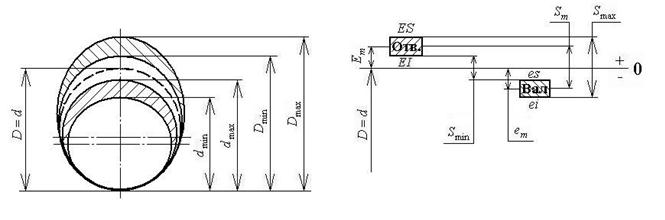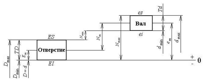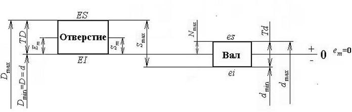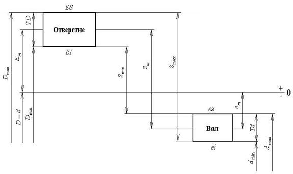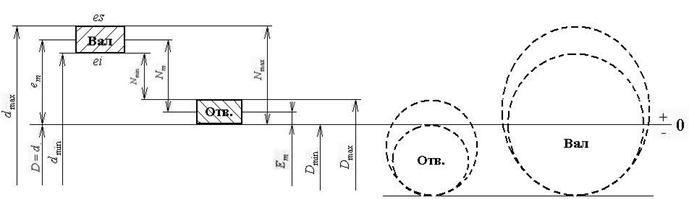 Рисунок 6. Схема полей допусков посадки с зазором (при сборке детали неподвижны).