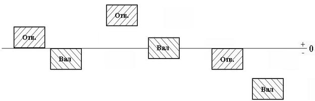 Примеры расположения полей допусков посадок с зазором (рис.8 а, б, в)