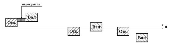 3. Переходная посадка – посадка, в которой вероятно появление как зазоров, так и натягов, и поля допусков отверстия и вала перекрываются (рис. 13).