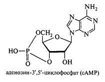 цАМФ образуется в организме под действием фермента аденилатциклазы. Он играет важную роль в регуляции процессов обмена, является проводником внеклеточных сигналов. Аналогичную роль играет цГМФ.