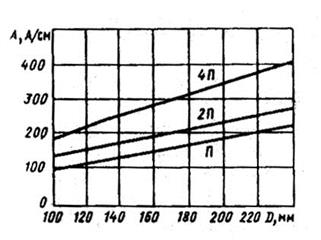 Рис. 11.9. Зависимость линейной нагрузки от диаметра якоря