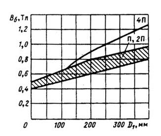 Рис. 11.10. Зависимость индукциив воздушном зазоре от диаметра якоря
