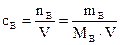 где nB – количество вещества В; mB – масса вещества, г; МВ –молярная масса вещества, г/моль; V – объем раствора, л.