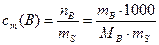 где nВ – количество растворенного вещества В; mB – масса растворенного вещества, г; mS – масса растворителя, кг; МВ - молярная масса растворенного вещества, г/моль.