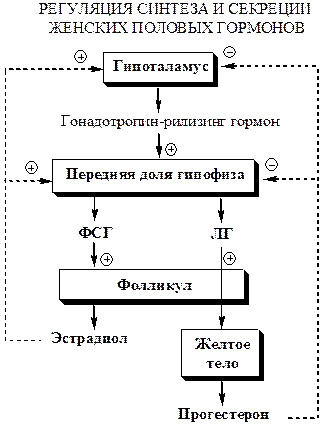 В пубертатный период чувствительность гипоталамо-гипофизарной системы к действию эстрогенов снижается. Импульсная секреция гонадотропин-рилизинг-гормона устанавливает суточный ритм секреции ЛГ и ФСГ.