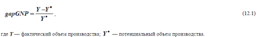 Реальный ВНП отклоняется от номинального — эти колебания фиксируются дефлятором ВНП. Колебания фактического объема выпуска от потенциального ВНП характеризуются показателем: