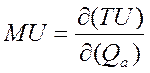 Математически предельная полезность представляет собой частную производную общей полезности товарного набора по объему потребления: