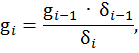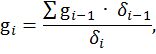 где gi –1 – интенсивность движения людских потоков, сливания в начале участка i, м/мин;