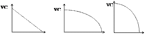3. Прогрессивные переменные издержки имеют место тогда, когда относительное увеличение переменных издержек больше, чем объем производства (рис. 1 в).