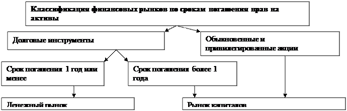 Рынок денежных средств – на нём обращаются финансовые инструменты сроком обращения менее года. Долгосрочные инструменты относятся к рынку капитала.