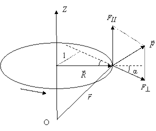 – оське перпендикуляр жазықтықта осьтен күш түсірілген нүктеге дейін жүргізілген радиус-вектор;