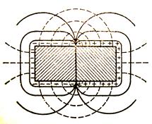 Рис. 44.4. Эквипотенциальные поверхности (сплошные) и линии Е (штриховые) поля, обусловленного контактной разностью потенциалов