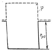 (потенциальную энергию вне металла полагаем равной нулю). Штриховой линией показано изменение потенциала при переходе через поверхность металла